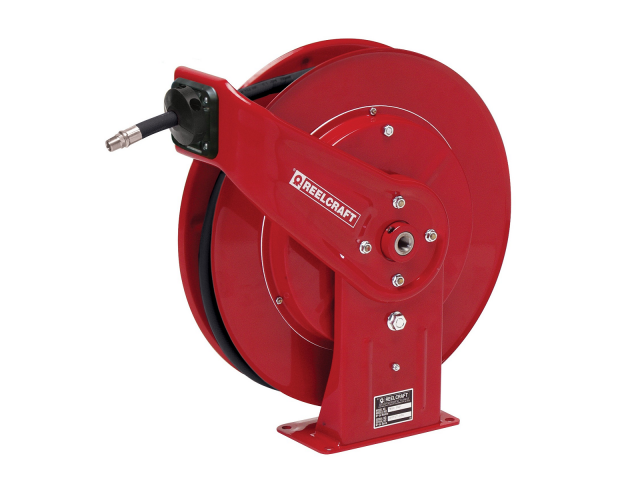 Reelcraft's spring retractable fuel delivery hose reels, equipped with Viton seals, incorporate metal forms to ensure the greatest possible strength and are ideal for mobile and permanent-mount applications. These rugged, corrosion-resistant reels are suitable for a wide variety of fuel applications including E85. Series FD80000 reels are supplied with our ball-bearing style swivel.